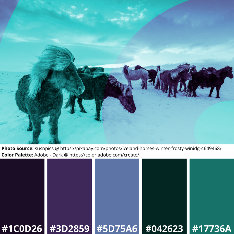 My fifth mood board is created from the duotone photograph of charismatic Icelandic Horses captured by susnics available for free download from Pixabay.